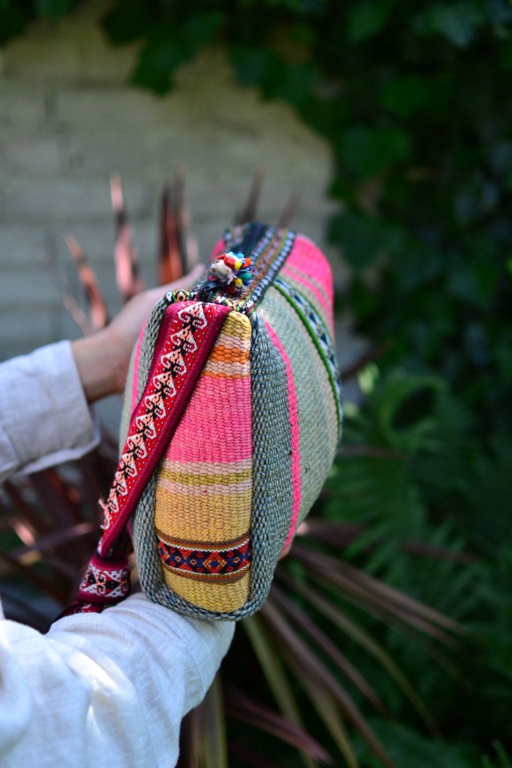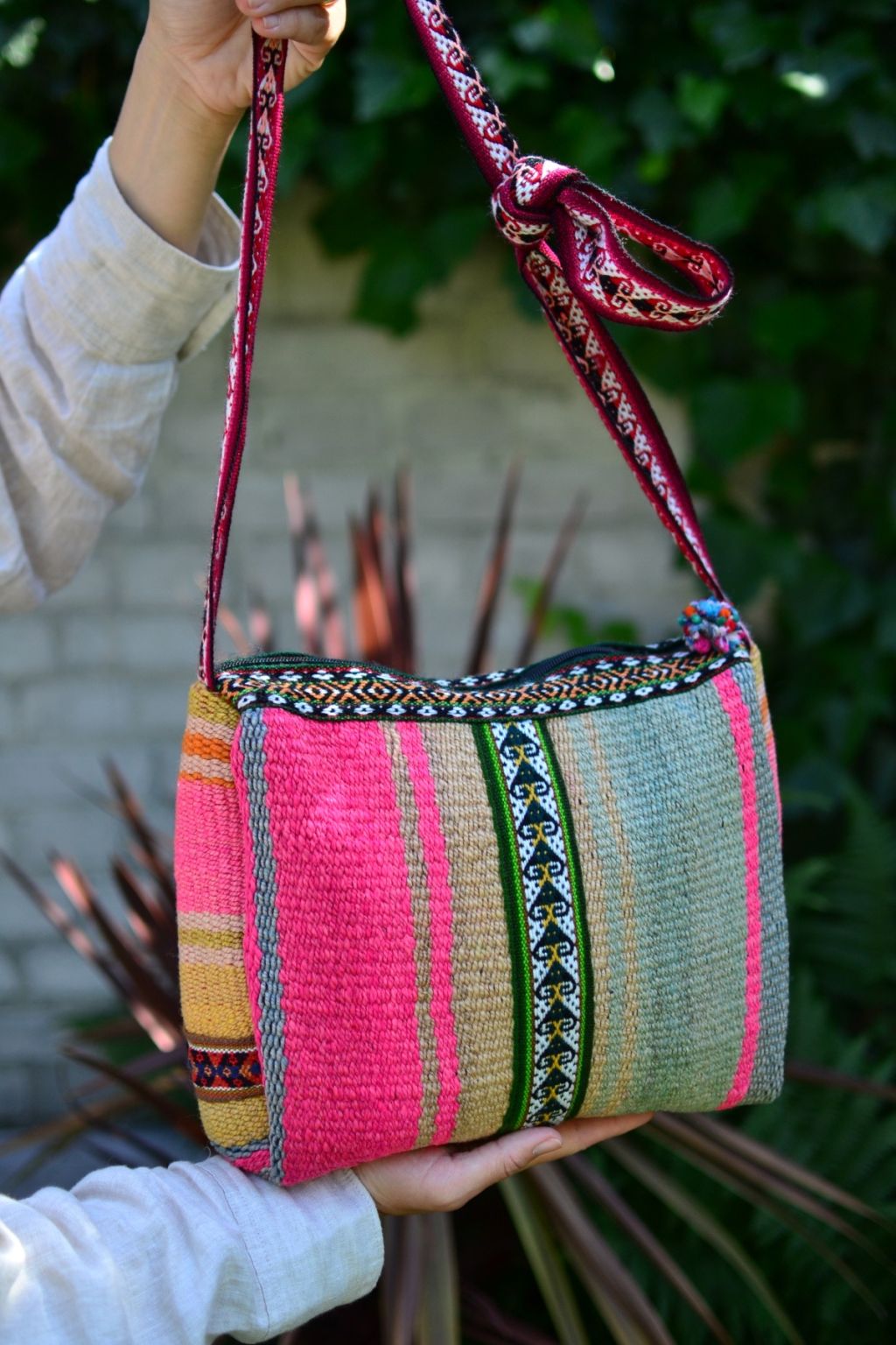 Midi torebka na zamek uszyta w Peru z ręcznie tkanej i naturalnie barwionej wełny. W środku wykończona czarną podszewką.