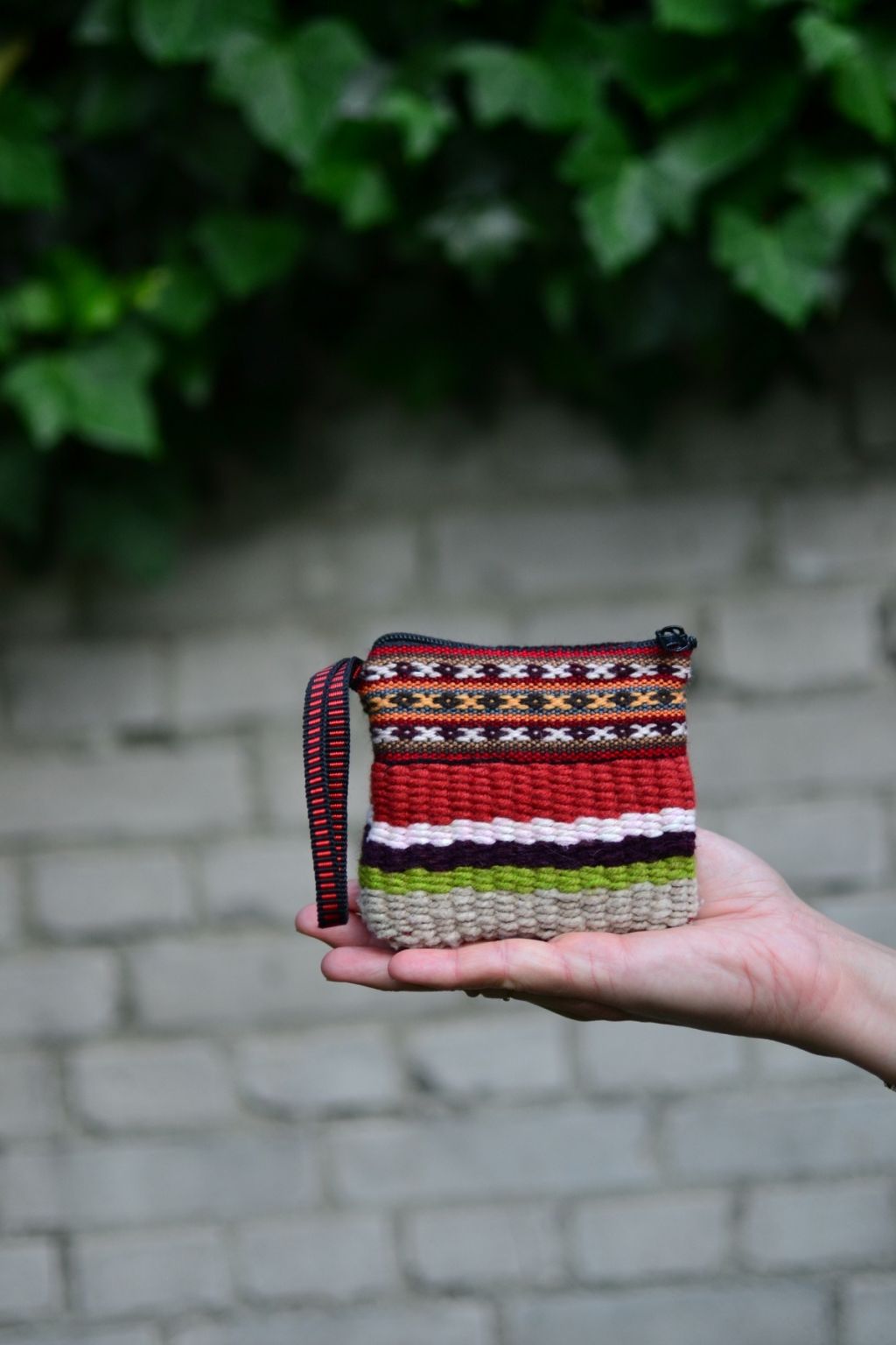 Saszetka w rozmiarze XS na zamek uszyta w Peru z ręcznie tkanej i naturalnie barwionej wełny. W środku wykończona czarną podszewką.