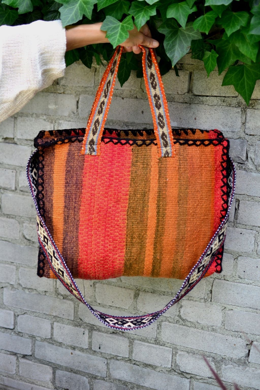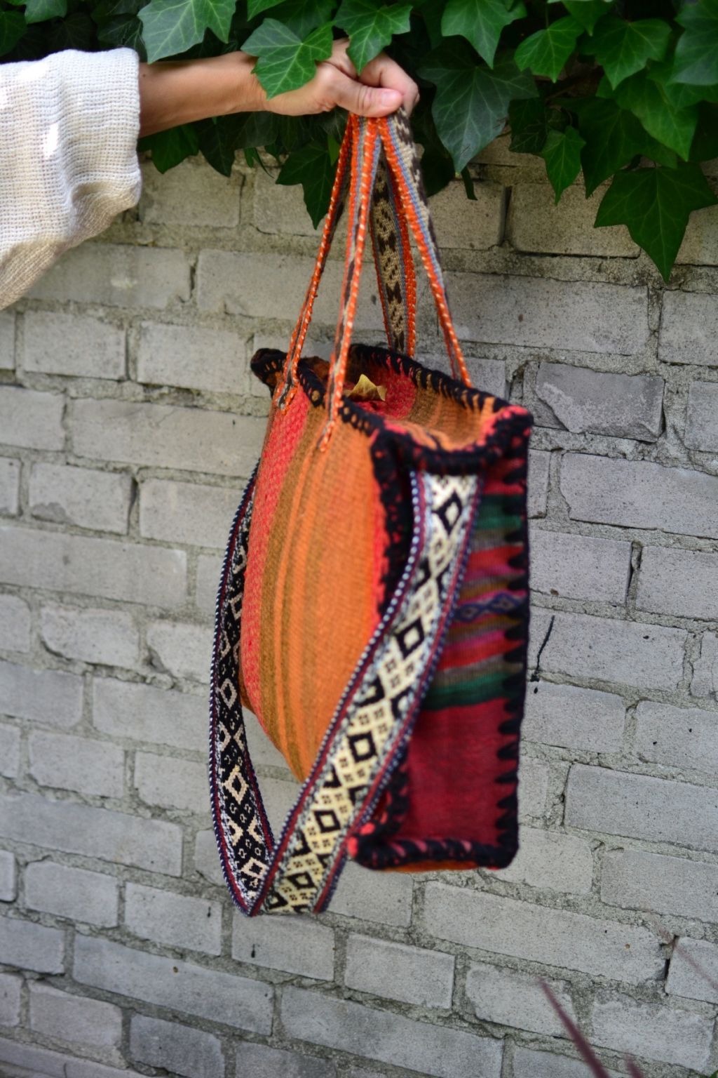 Duża torba shopper uszyta w Peru z ręcznie tkanej i naturalnie barwionej wełny. W środku wykończona czarną podszewką. Zapisana na zamek. Posiada jedną komorę i małą kieszonkę na zamek. Torba jest bardzo pojemna. Posiada dwa uchwyty i dodatkowy długi pasek.